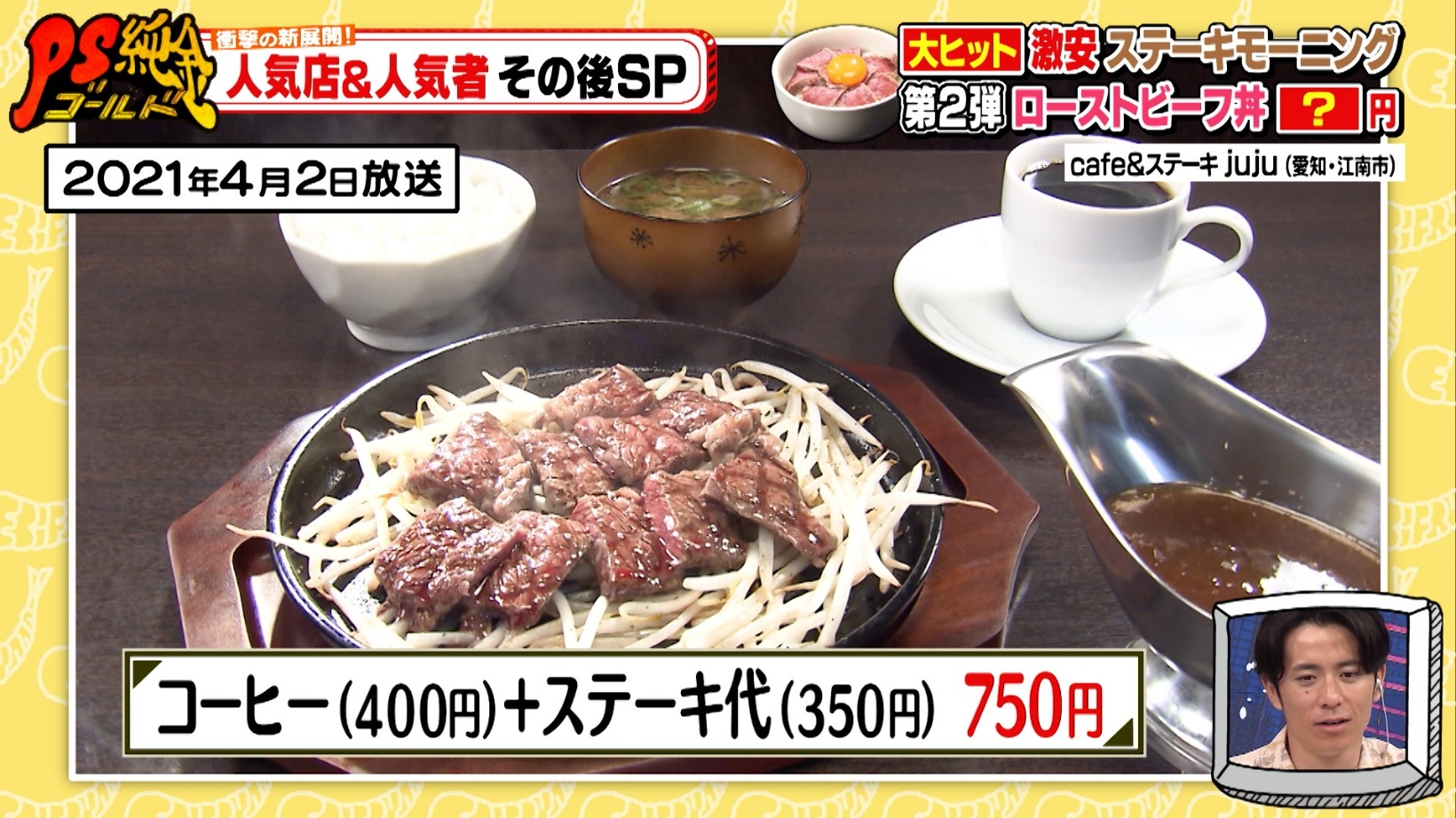 地元の人々に愛される喫茶店『cafe&ステーキjuju』。以前は、安すぎるステーキモーニングを調査しに、高田と藤森が店を訪れました。