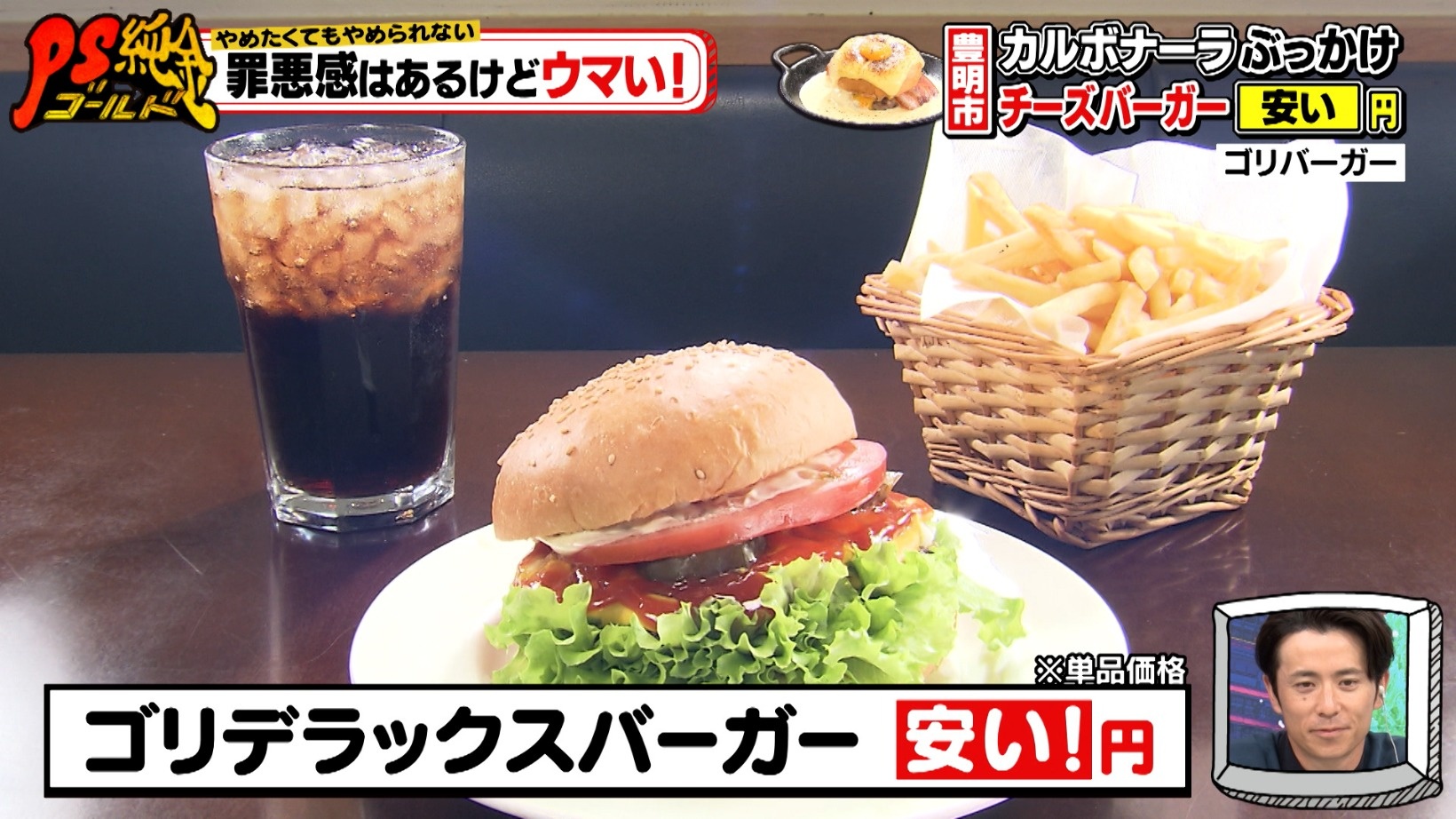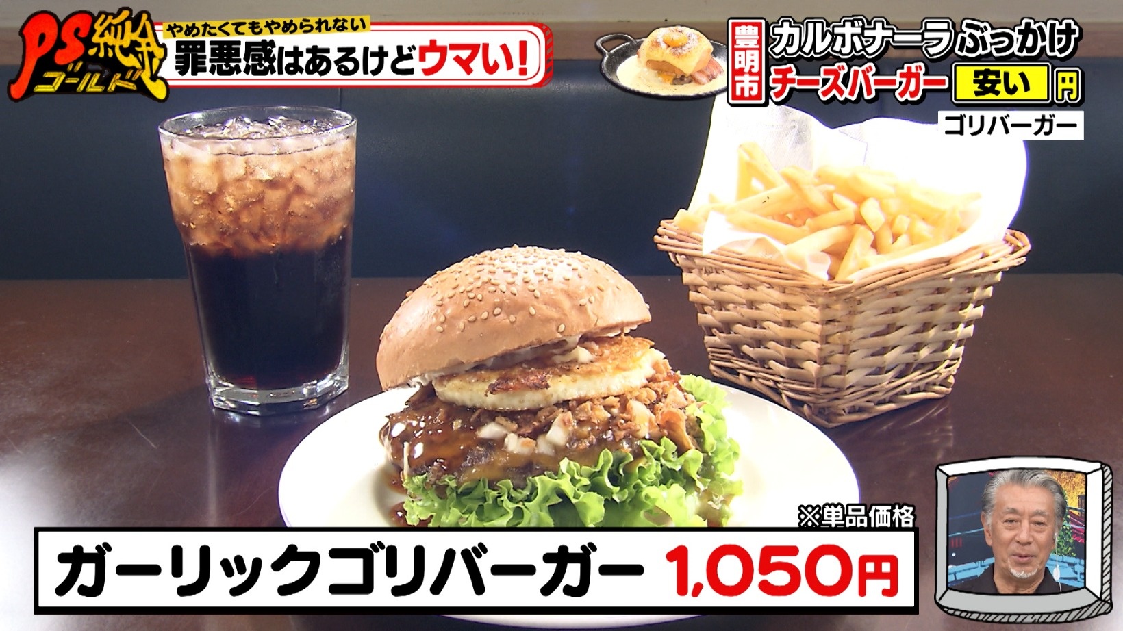 やめたくてもやめられない罪悪めし!極厚チーズのカルボナーラバーガー&激盛りソフトクリーム『PS純金(ゴールド)』