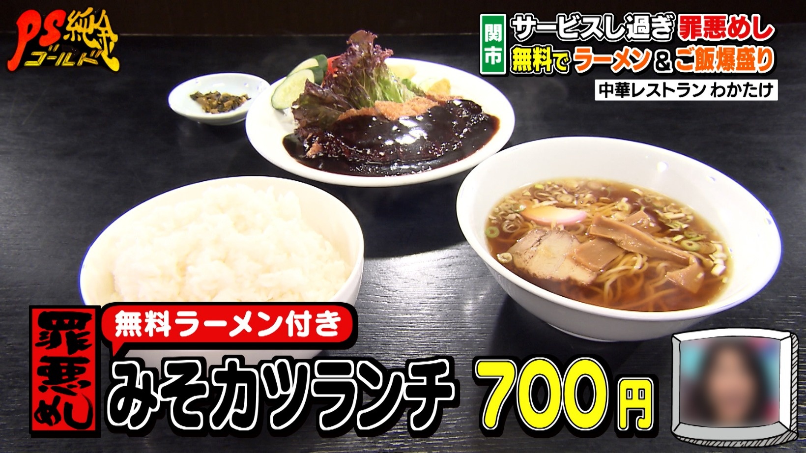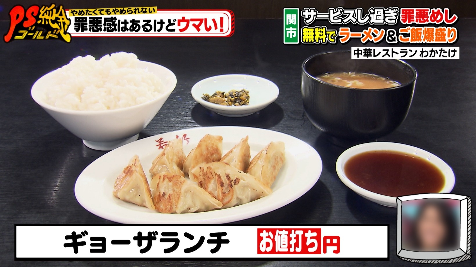 ここで食べられる罪悪めしは、無料で半ラーメンが付いてくるランチ。味噌汁が半ラーメンに変更できるというまさかのサービスに、藤森は、「ギルティーチョイスですね!」と罪悪感の理由に納得します。