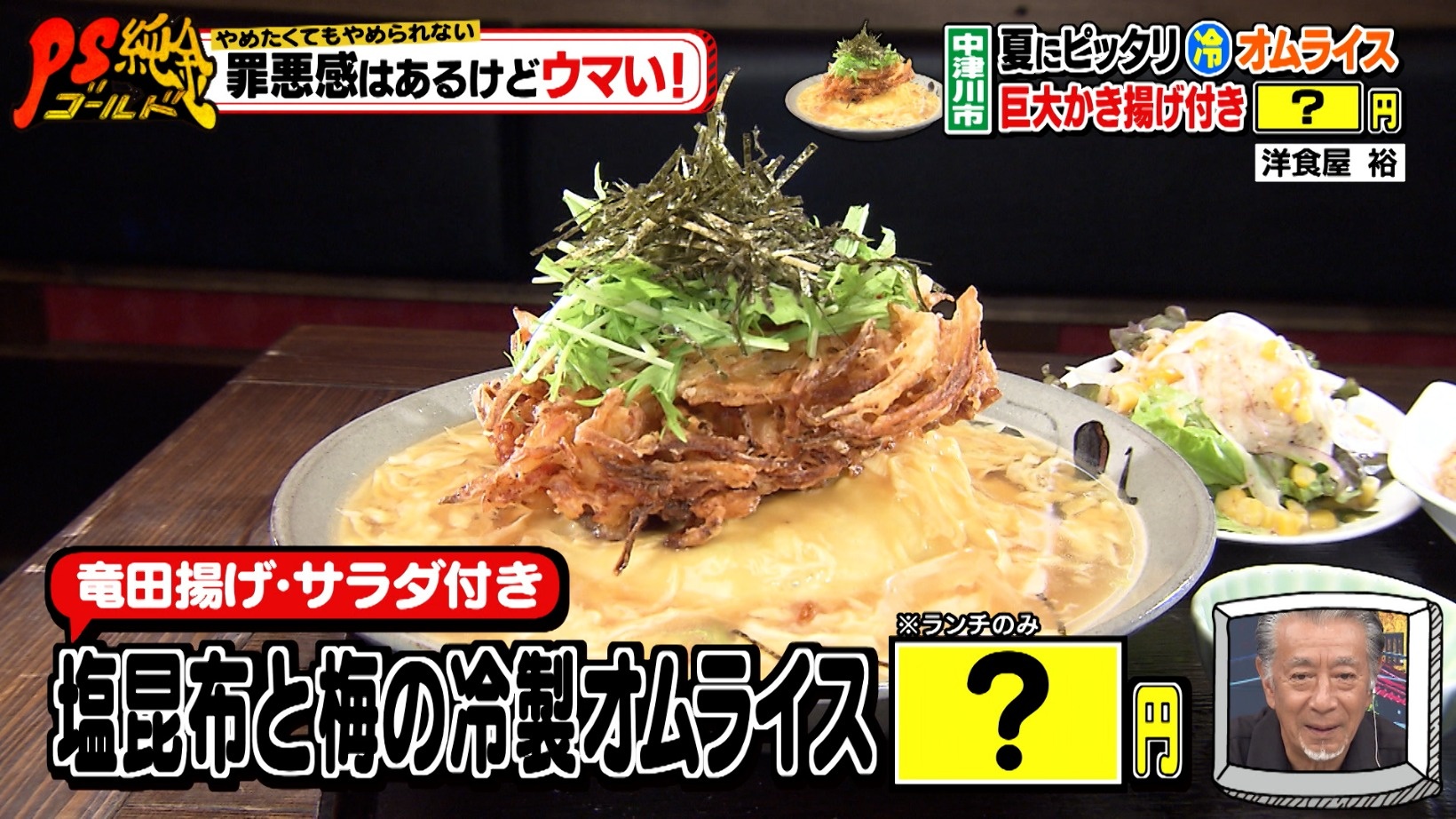 ところがオムライスの上には巨大かき揚げがのっており、これには藤森も、「低カロリーじゃねえ!」とツッコミを入れるのでした。