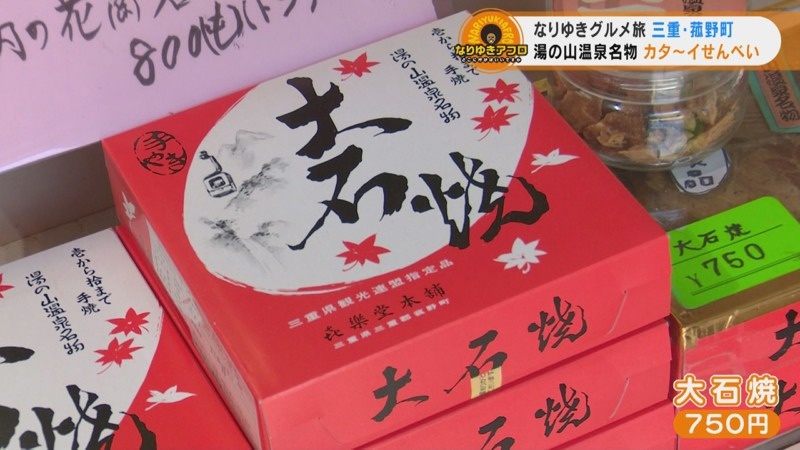 早速、菰野町で一番美味しいと思うものを聞いてみます。答えは、昔からお土産として売られている人気の『大石焼(750円)』。山での非常食としても活躍してきたおせんべいで、大石公園の川の中にある、推定800トンもの大きな石を模したものなのだとか。