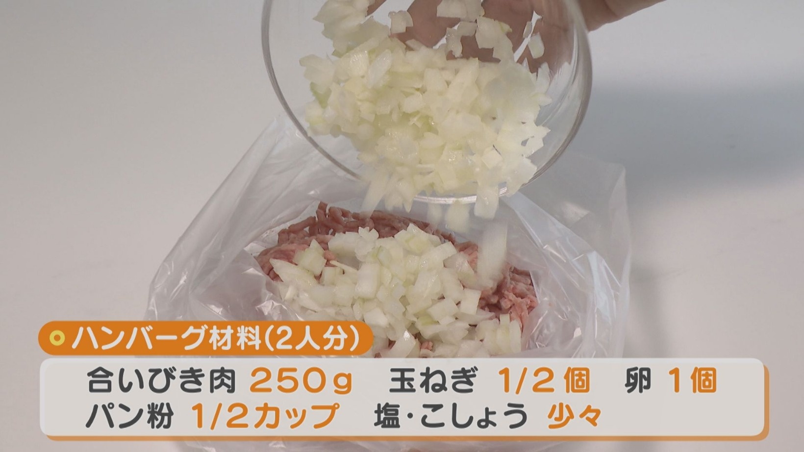 工程が多くて作るのが大変な煮込みハンバーグも、アイラップがあればボウルもフライパンも要りません。アイラップがボウル代わりになり、湯煎だけで簡単にできます。