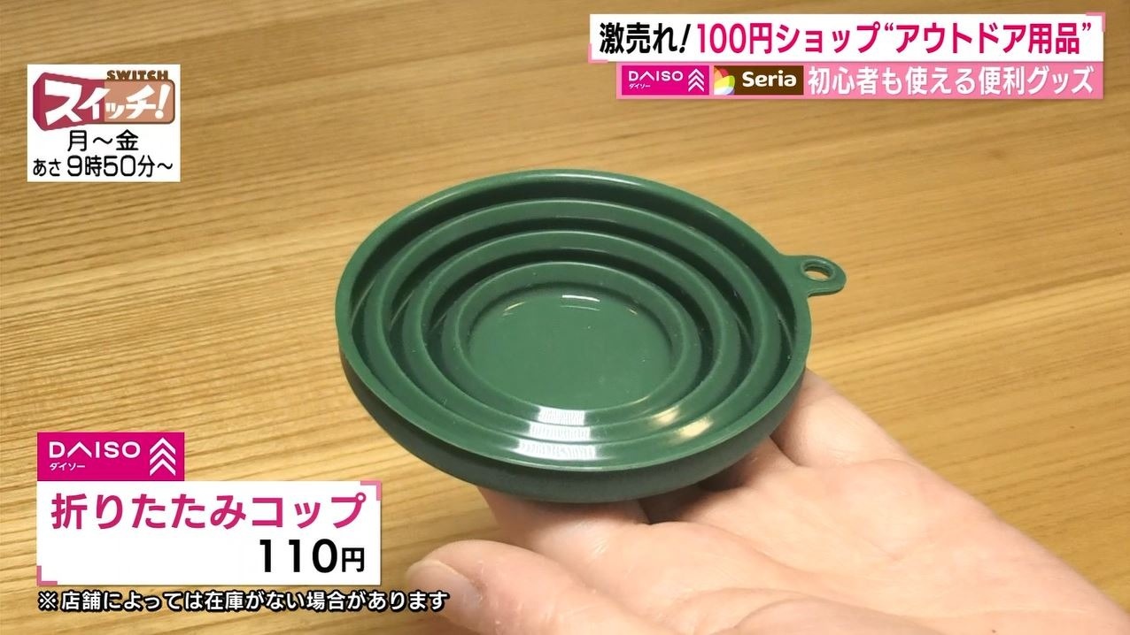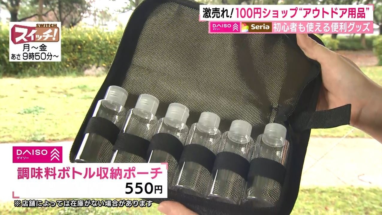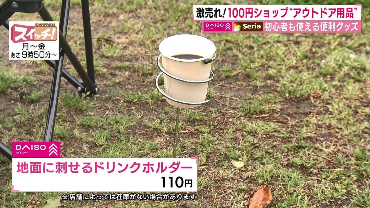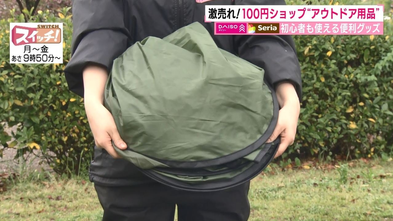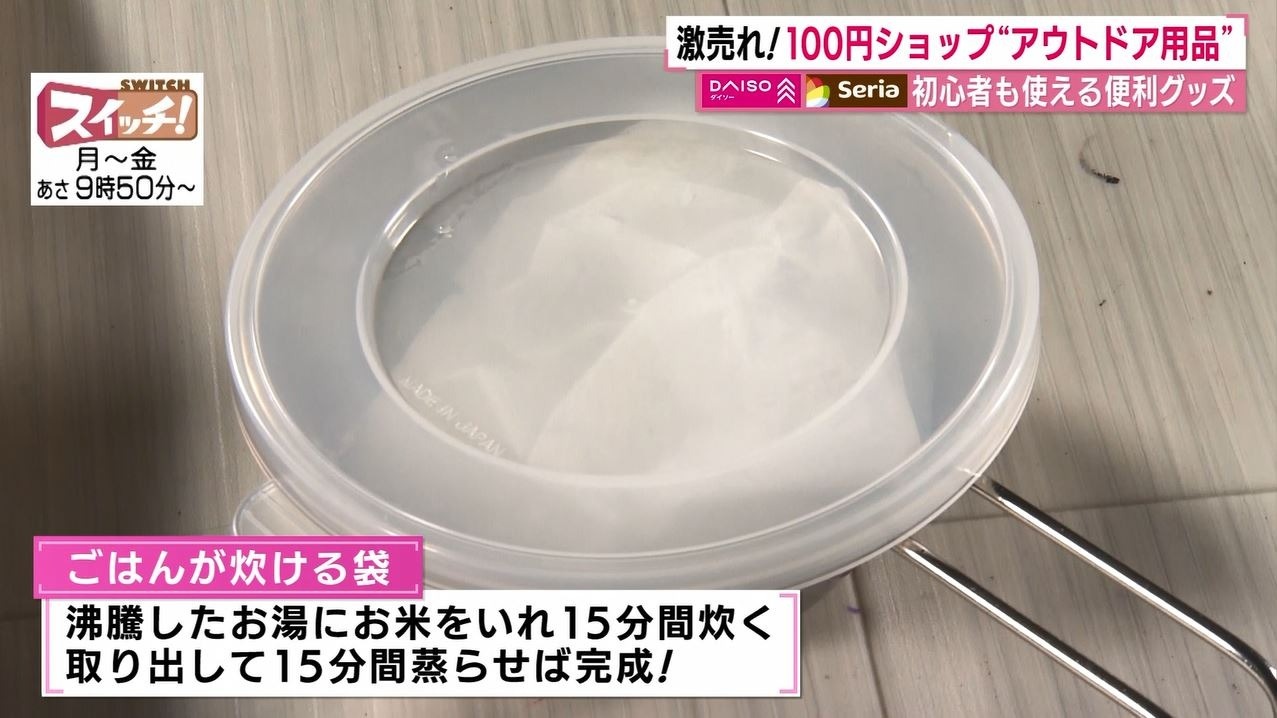 情報番組『スイッチ!』で特集された『100円ショップで簡単アウトドア』(2022年4月26日OA)。