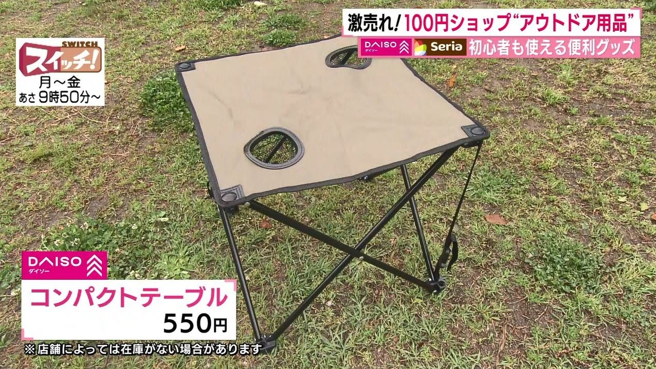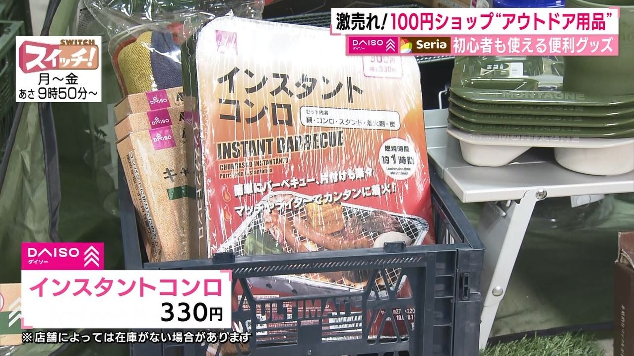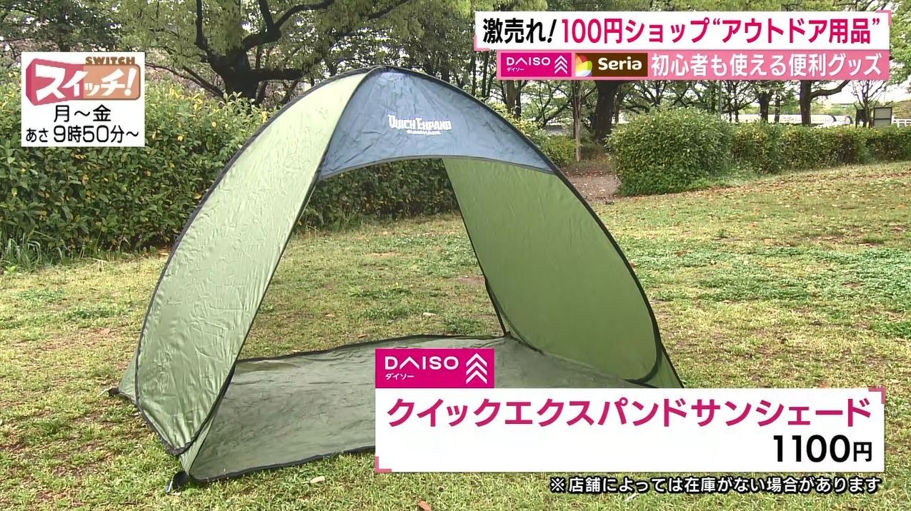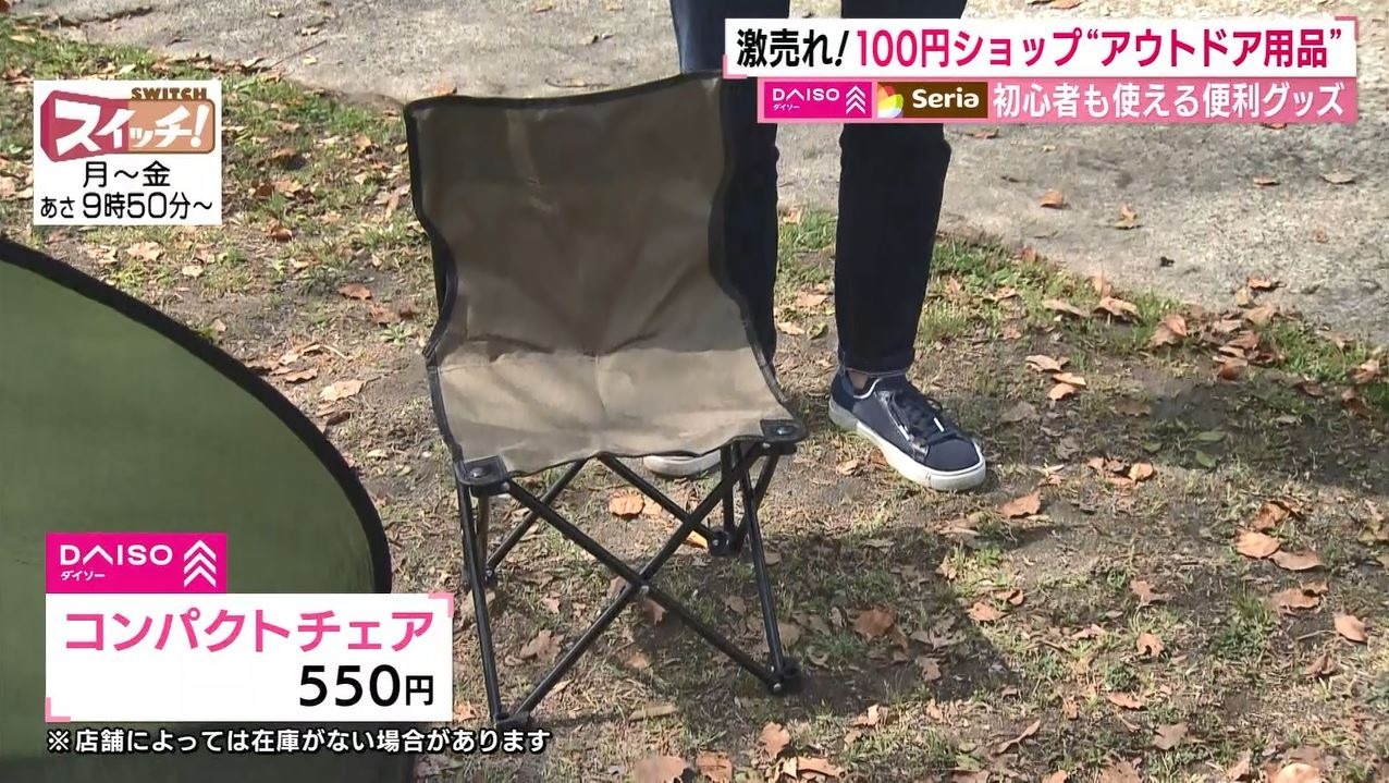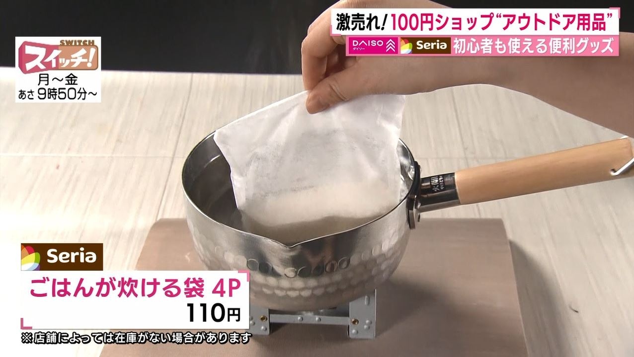 情報番組『スイッチ!』で特集された『100円ショップで簡単アウトドア』(2022年4月26日OA)。