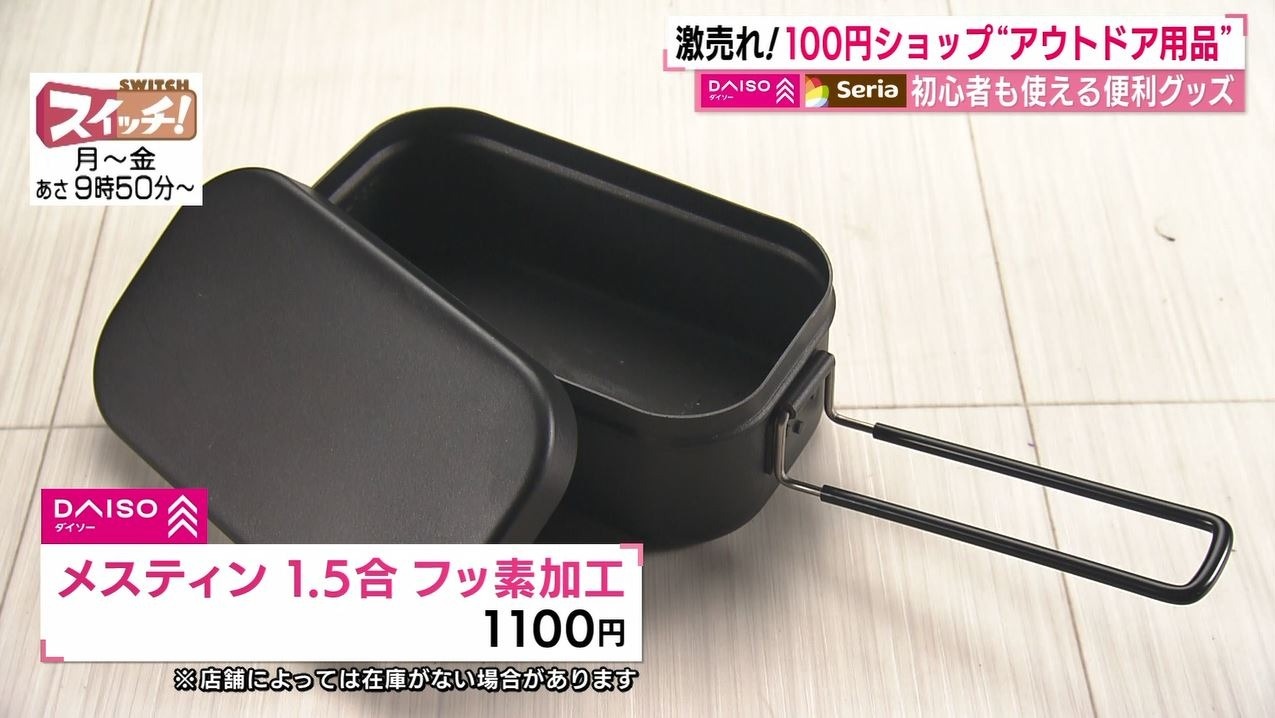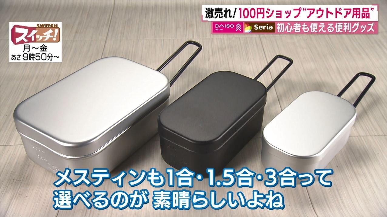 さらに近ごろブームになっている“メスティン”も100円ショップで手に入るんです!『ダイソー』のメスティンは発売当初、売り切れが続出するほど大人気で、現在は1合・1.5合・3合のサイズをラインナップ。人数や用途に応じて好みのものを選べます。