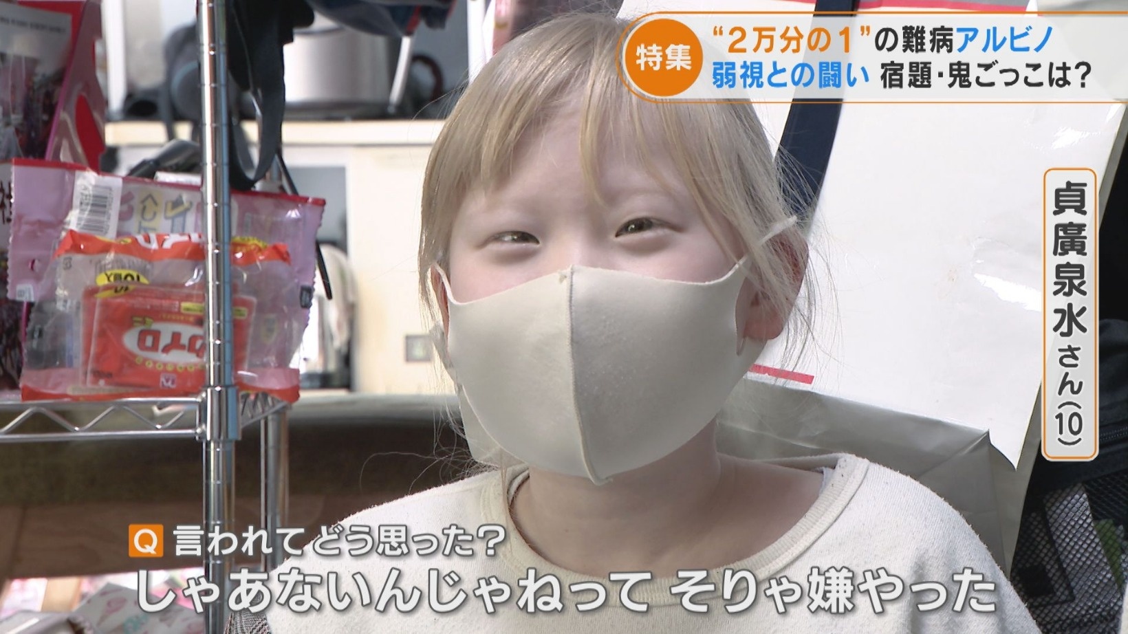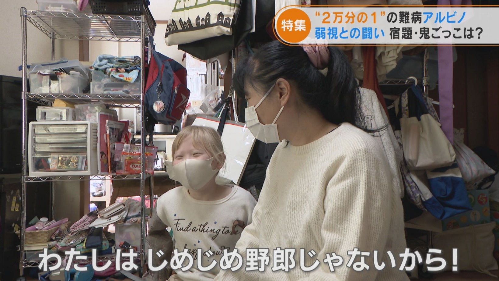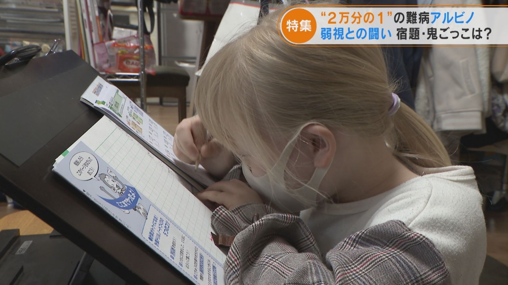 生まれつき肌や髪の色素が少ない「アルビノ」という病気、国の難病にも指定されています。アルビノの症状に関してあまり知られていないのが「弱視」いう目の障害。メガネによる矯正も難しいと言われています。病を受け入れ力強く生きぬく、10歳のアルビノを患う少女の日常を取材しました。