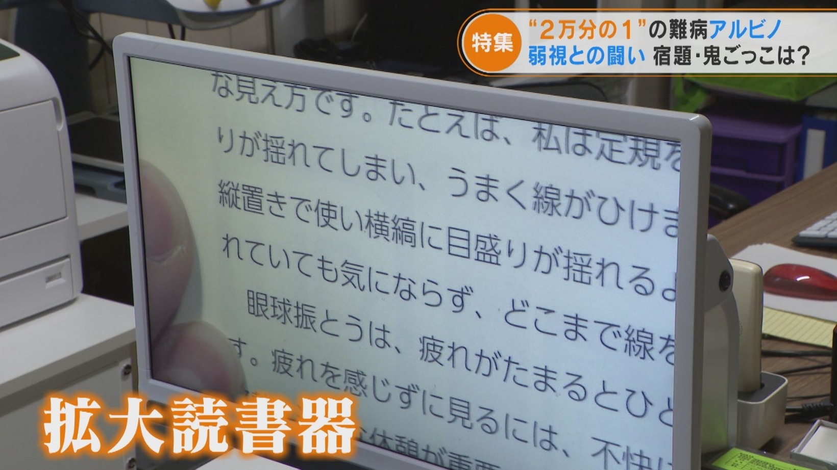 実際にアルビノの人に限らず弱視の場合、授業内容が難しくなる中学・高校で黒板の文字が見えにくく、ついていけなくなるケースが多く見受けられるといいます。その対策として、簡単な操作で文字を拡大できるタブレット端末や片方の手が空く単眼鏡、自宅学習では拡大読書機などを積極的に活用することが必要だと相羽さんは訴えます。