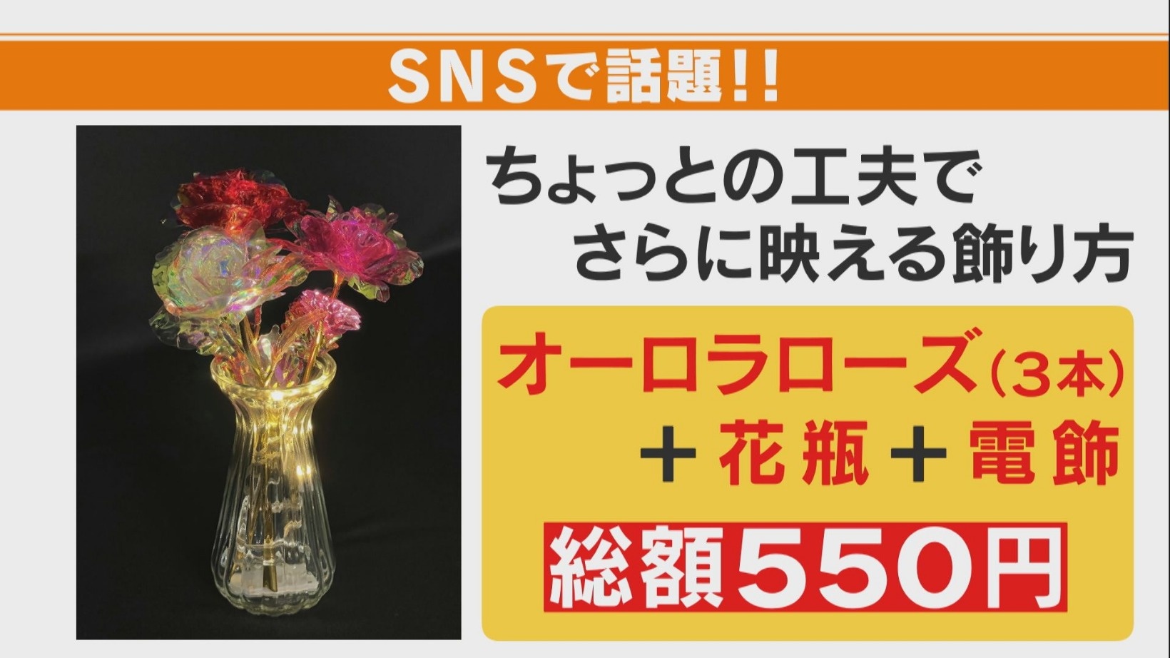 2021年9月、100円ショップ「Watts」から発売された『オーロラローズ』。フィルムの花びらがキラキラと輝くバラのオブジェです。