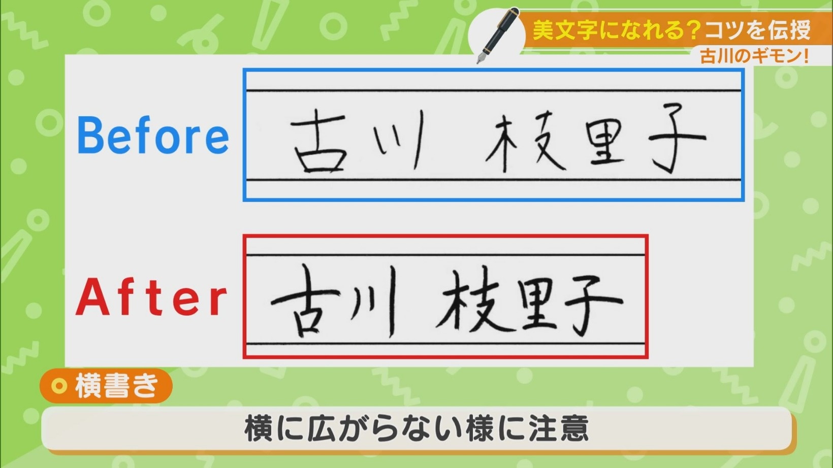 新年度が始まり、お子さんの持ち物や書類に名前をたくさん書いたお母さんが多いのではないでしょうか? 書くたびに、「もっと字がうまくなりたい」「美文字になりたい!」と思う方も少なくないはず。名古屋で美文字塾を経営する「ビジネスペン字」の講師・谷口栄豊さんが、“美文字に見せるコツ”を教えてくれました。CBCテレビ「チャント!」5月12日放送から