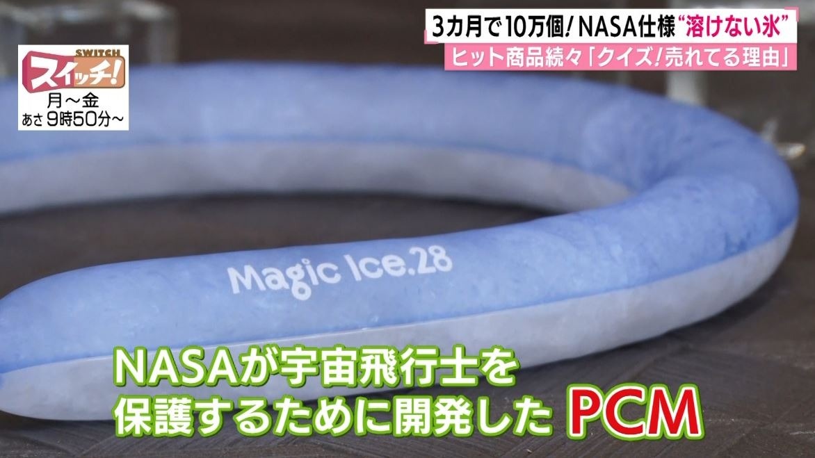 周囲の温度が上昇しても一定の温度を保つことができる素材で、これを製品に転換したのが『マジックアイス.28』なのです。