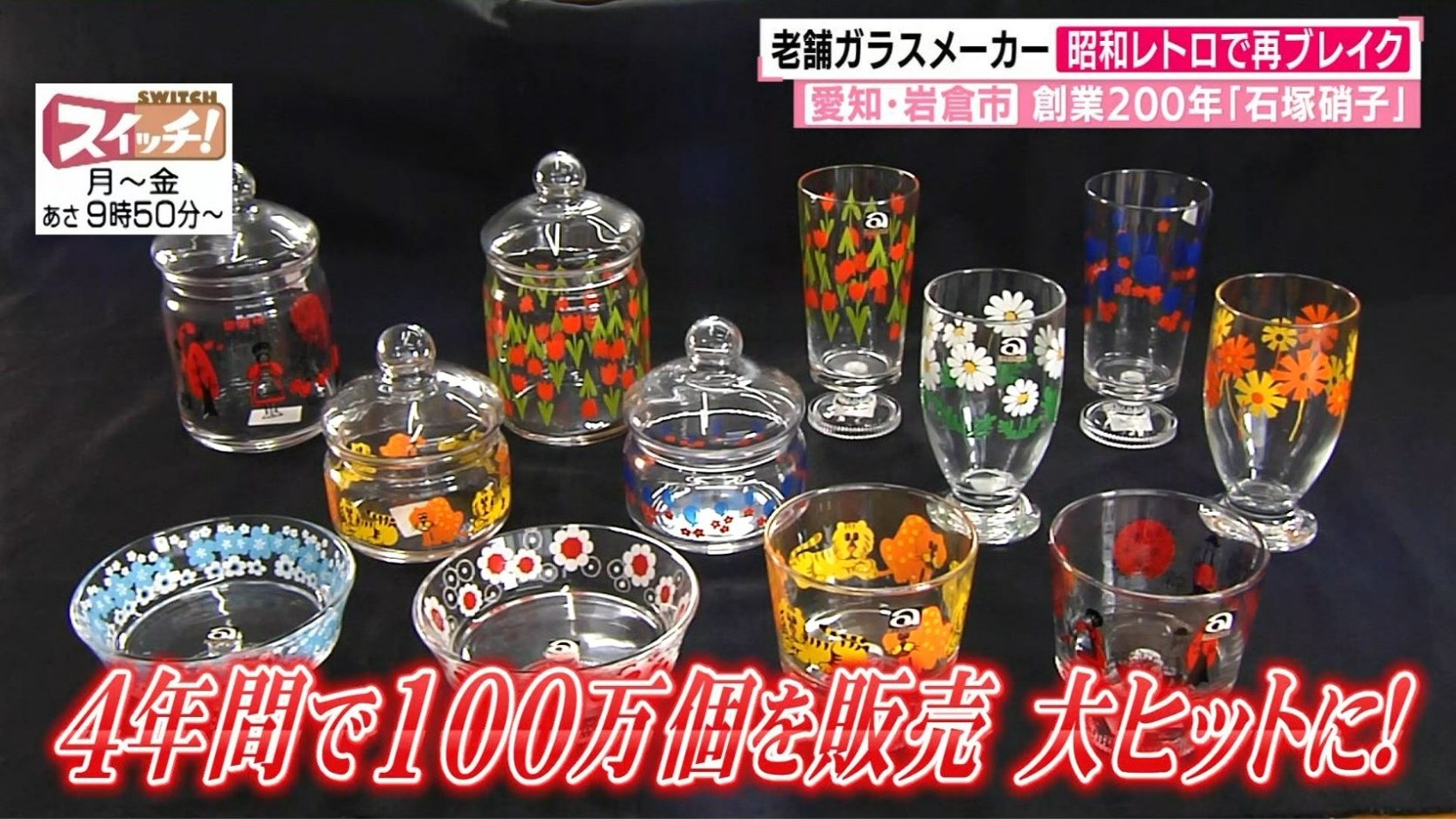 これは昭和40年代にヒットした『アデリアグラス』を復刻した『アデリアレトロ』というグラス。昭和生まれには「懐かしい」、若い世代には「新鮮でエモい」と評判になり、わずか4年間で100万個も売れる大ヒットに。そんな『アデリアレトロ』の人気の秘密を探ります。 東海テレビ『スイッチ!』9月7日放送から