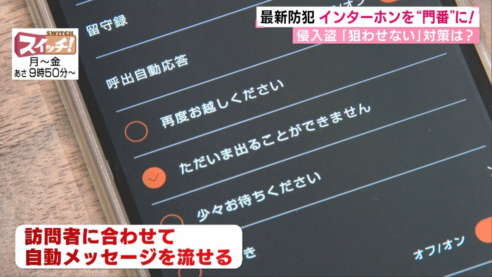 さらに怪しい人物がインターホンを押した際には「ただいま出ることができません」など訪問者と直接話さずに自動メッセージを流す機能も備えています。