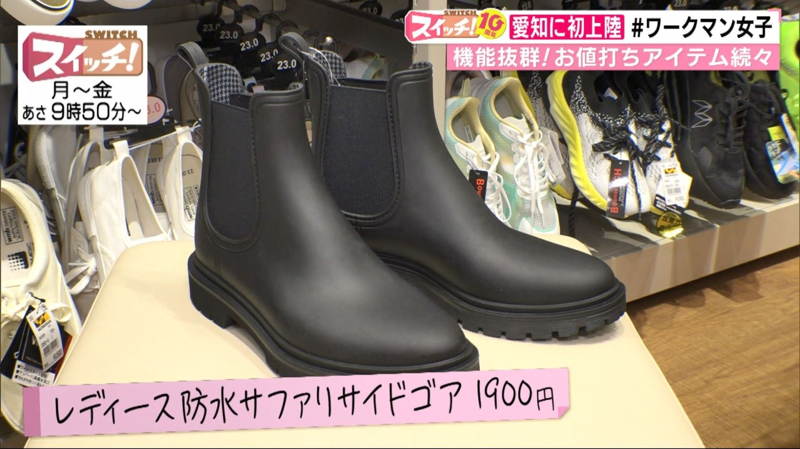 この時期に大活躍しそうなのが『レディース防水サファリサイドゴア』(1900円)。側面がゴムになっていて急いでいる時でもすっぽり履けます。シンプルなデザインで、どんな服装にも合いそうです。