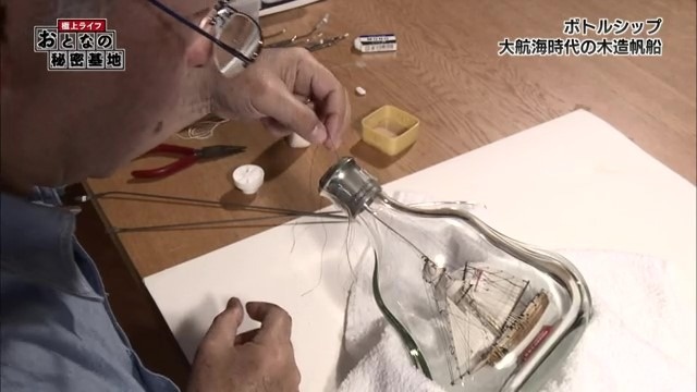 車やプラモデル、カメラなど、趣味の世界を楽しむ大人たちに密着してその魅力を調査する『極上ライフ おとなの秘密基地』。2016年~2018年までテレビ愛知で放送され、現在はLocipoでアーカイブを見ることができる。今回は「ボトルシップ」をテーマにした放送回を取り上げ、ボトルシップ歴33年の秦鐘治さんにこだわりのポイントを紹介する。