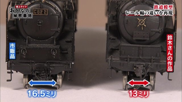 楽しんでいた鈴木さんだったが、D51形が止まってしまい原因を探る。「格好をつけてギリギリにするから」と鈴木さんが言う。止まった原因は、車輪とブレーキの間が狭すぎたことにあった。本物の再現にこだわるあまり、隙間を0.1ミリまで追い込んで作っていたのだ。「鈴木さんみたいに作り込まない。一生懸命作ろうとしちゃうんで、どうしてもそういうのが出てくる。いかに手を抜くかっていうことがもう人生長いんだからわかんなきゃダメだよ」と鉄道模型仲間に言われるものの、どこか嬉しそうな鈴木さんであった。