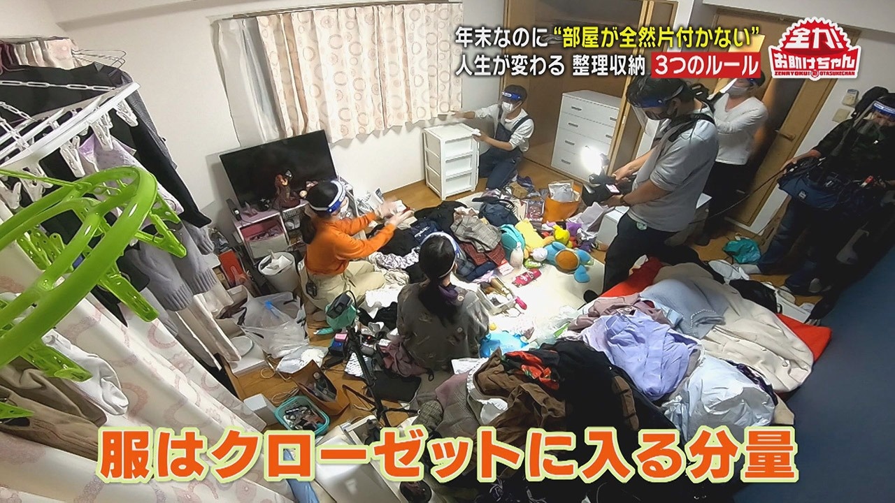 早速Mさん宅を訪ねた平松くんは目が点に!8畳1Kのご自宅は、衣類を中心に散らかり放題だったのです。