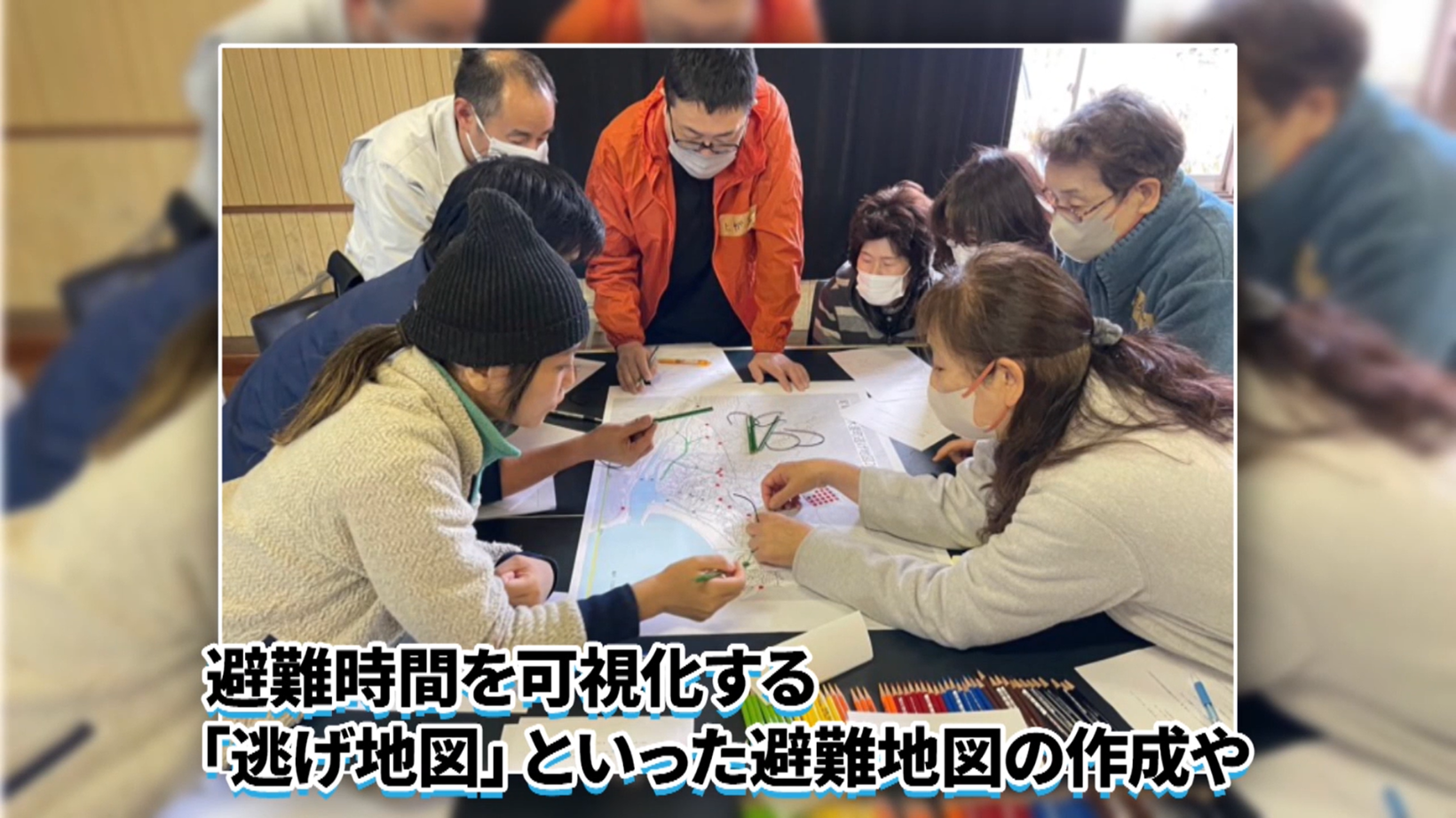 三木里地区は南海トラフ巨大地震の際に、甚大な津波被害が予想されている地域。丹羽さん率いる「事前復興まちづくり」チームは、三木里地区で現地調査を行ったり、避難時間を可視化する避難地図「逃げ地図」の作成や空き家の活用方法などを、自治体に提案する取り組みを行っているといいます。