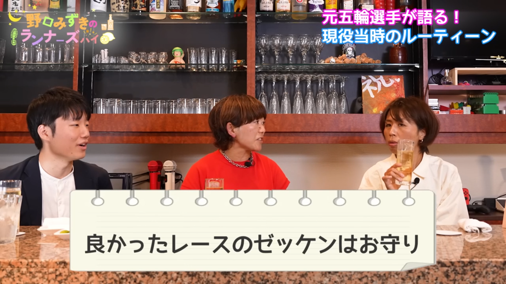 野口さんは、自分が今まで出場してきたレースで、成績が良かったときのゼッケンを集めており、大会当日に“お守り”として持参していたことを告白。そのお守りを忘れた時のレースは、成績が悪かったことを明かしました。