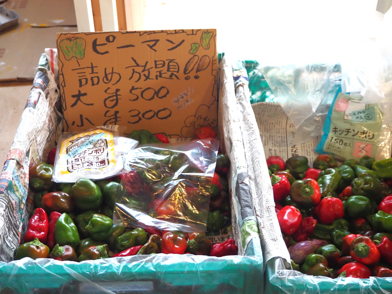 モロヘイヤやピーマンなど野菜をはじめ、バターナッツかぼちゃやフェアリーテール(ナス)など、スーパーでは見かけない西洋野菜も並びます。