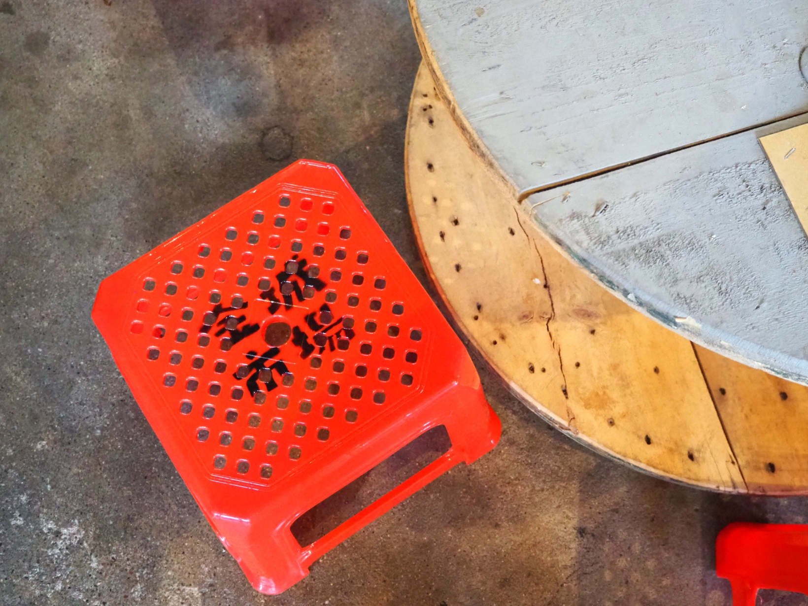 市場内を散策していくと、カラフルなプラかごバッグや古着、レコードなど暮らしに取り入れたい雑貨もいろいろ。なかには、“包丁マッサージ”を挑戦できる治療院も!
