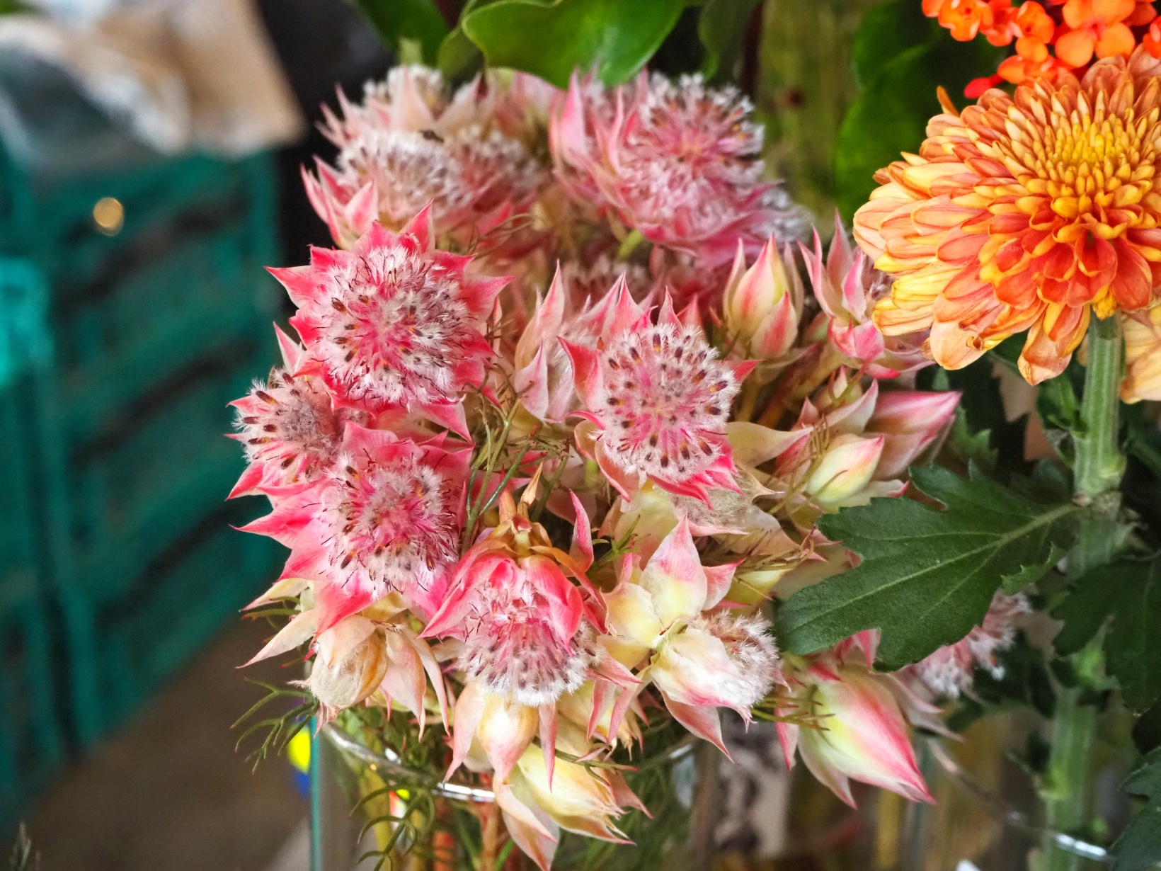 個性豊かな花は、眺めているだけで眼福。ちなみに、この日のオススメは「セルリア」。ブライダルシーンにも人気の花で、繊細で華やかな花びらが印象的です。