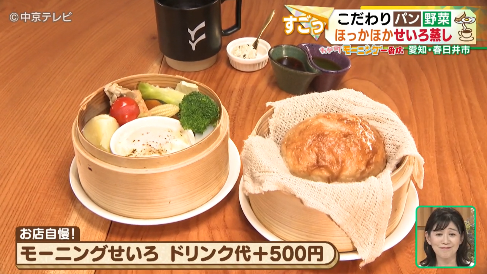運ばれてきたのは、なんと“せいろ”!中には、せいろで蒸した野菜、さらに天然酵母を使用したロールパンが入っています。蒸したてのロールパンは、フワフワ&モチモチの食感!