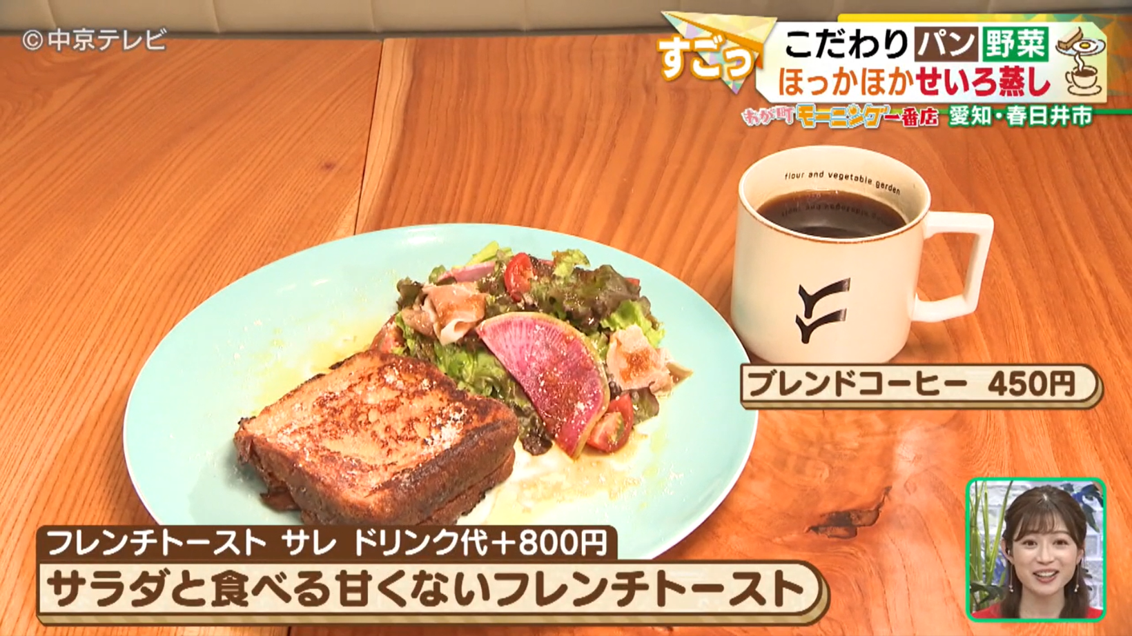 「サラダと食べると甘くないフレンチトースト」(ドリンク代+800円)もオススメのモーニング。チーズ風味のフレンチトーストが野菜とマッチ!“自然のうまみ”を堪能することができます。