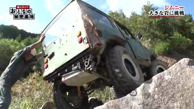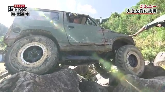 今回の秘密基地の主は、スズキの軽四輪駆動車『ジムニー』を操る服部哲也さん。「車の傷は勲章」と言う服部さんは、10年以上も同じジムニーで岩場での走行を楽しむ。