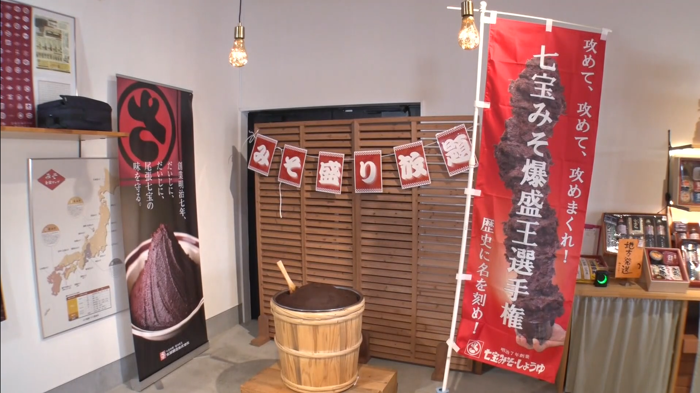 そんなショップで、日頃の感謝を込めて定期的に開催しているのが「七宝みそ」の“盛り放題”。制限時間は30秒(大人1000円・子ども800円)で、盛ったみそはそのままお持ち帰り可能!時には、チャンピオンを決める“七宝みそ爆盛王選手権”も行われ、地元の人を中心に賑わいをみせています。