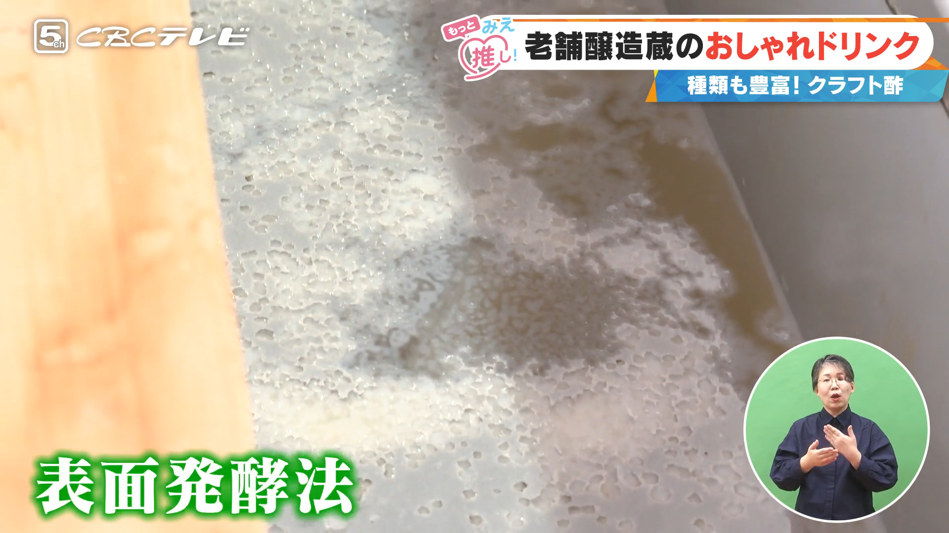 表面発酵法とは、空気に触れた表面が酢酸発酵し、対流することで時間をかけてお酢をつくる製法。完成までかかる時間は、なんと約3か月!時間をかけることによって、生まれてくる甘みを大切にしています。