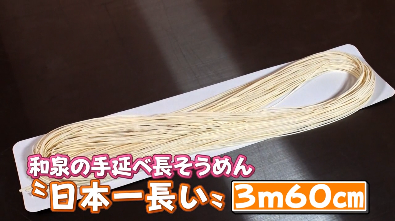 特徴はその長さで、“長そうめん”と呼ばれるにふさわしく、なんと3メートル60センチ!日本一の長さを誇ります。