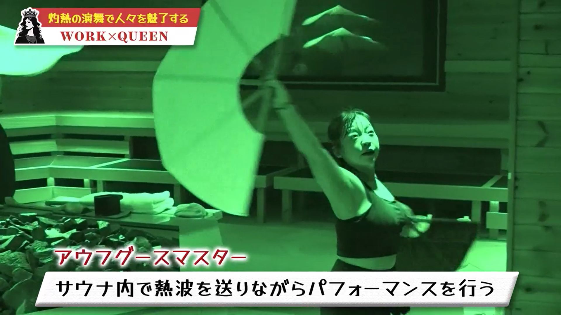 約80度のサウナ内で約15分にわたり、熱波はもちろん、全力でダンスや演技を披露。なぜ、佐野さんは、アウフグースマスターの道を志したのでしょうか。