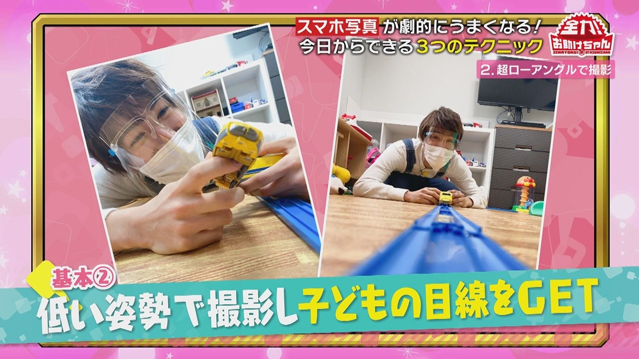 平松くんが子ども役になって藤原さんが撮影してみると、臨場感あふれる写真が撮れました。これには平松くんも感動!