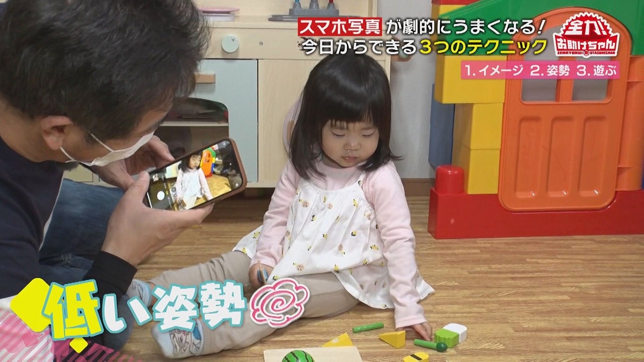 Oさんも一緒に遊び、声をかけながら目線を下げて撮影。