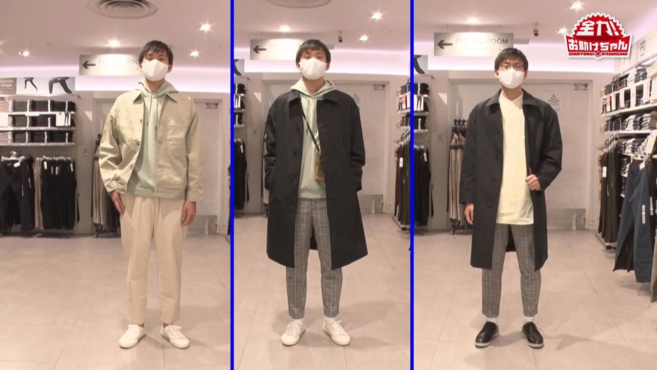 Sくんのような高身長さんにはロングコートもオススメ。岡田さんが選んだのは、『オーバーサイズステンカラーコート(6,589円)』。インナーをカジュアルにしてもキレイ目に着てもかっこよくキマるので、1枚あると便利です。