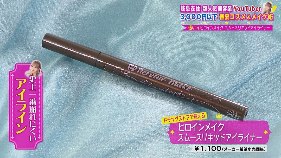 たくさんのアイラインを試したななこさんが、自分史上一番崩れにくいと感じたアイラインが『ヒロインメイク スムースリキッドアイライナー』(1,100円 メーカー希望小売価格)。4,000万本以上を売り上げている超人気商品で、ウォータープルーフなのにメイクを落とすときはお湯で落とせるという優れもの。汗をかきやすくなる今からの時期にピッタリですよ。