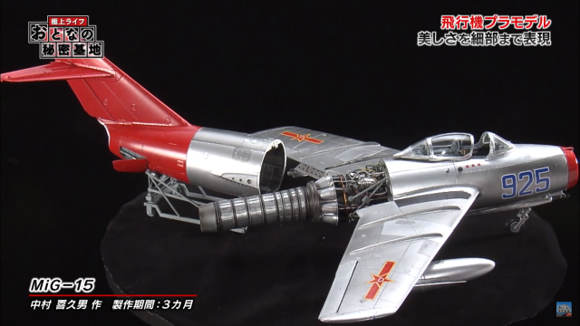 こちらはソビエト連邦が開発した戦闘機『MiG15』。このエンジン部分も中村さんがオリジナルで作ったものだそうだ。