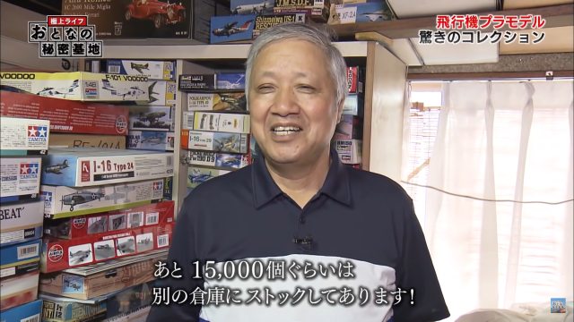 「頭の中はずっとその小学校5年生の頭なんですよ」と話す中村さん。新しいプラモデルを見るとついつい買って手に入れたくなるそうで、気づけば大量のコレクションになっていたという。2階のコレクションはおよそ9000個。さらに3階にもコレクションがあり、全て合わせると飛行機プラモデルを中心として約15000個ものプラモデルが集められている。しかし、中村さんのコレクションはこれに留まらない。