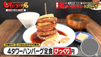『PS純金(ゴールド)』え?この量でこの値段!?マシュマロ食感の10段ハンバーグタワー&山盛り鉄板スパ