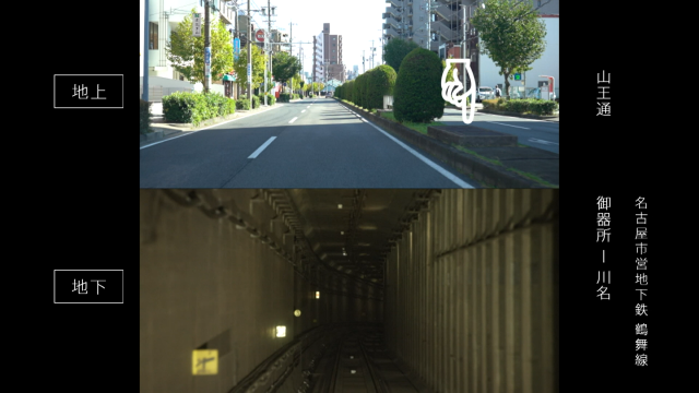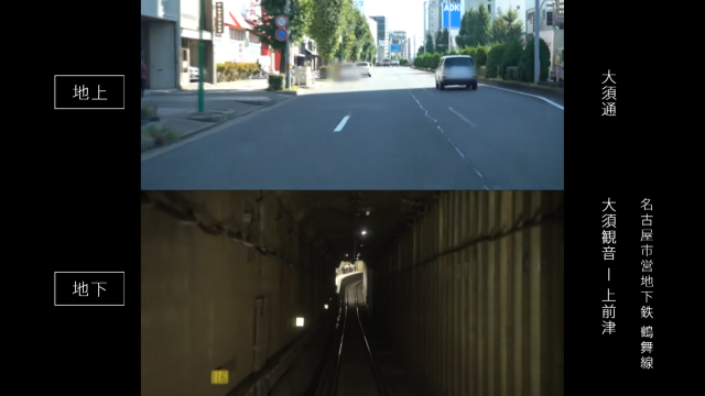 左カーブを超えると地上はしばらく平坦な道。一方の地下は上前津の駅に向かってゆっくりと下っていきます。