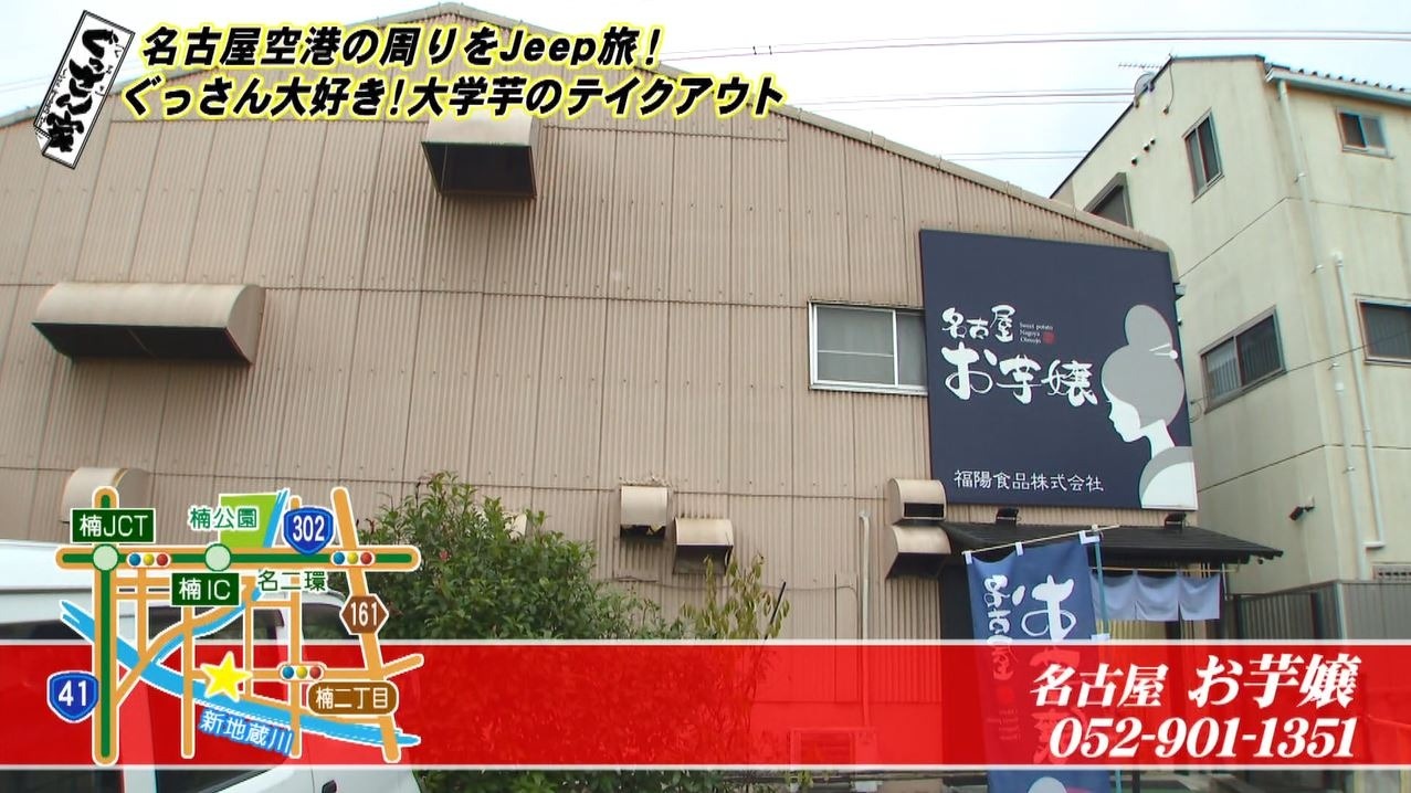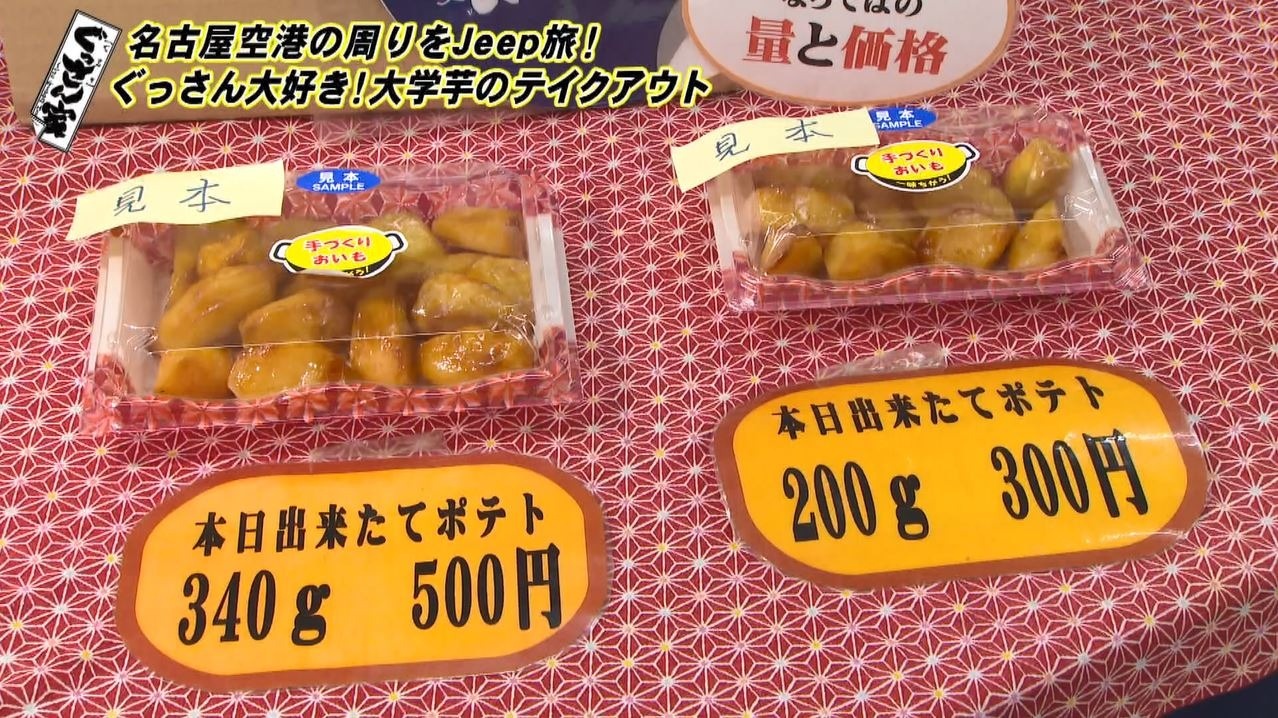 続いて訪れたのはぐっさんの大好きな大学芋のテイクアウト専門店『名古屋 お芋嬢』。元々は業務用の卸売が専門でしたが「おいしい大学芋をお客様に直接届けたい」という思いから工場の横に直売所を作って販売。出来たての大学芋がお得にいただけます。
