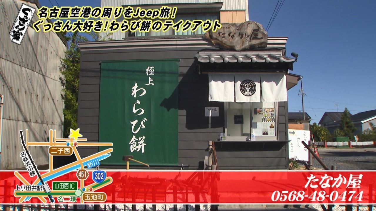 今回(2021年11月13日放送)は『ぐっさん!名古屋空港の周りをドライブ旅』。県営名古屋空港がある愛知・豊山町で注目のグルメスポットをJeepで巡ります。