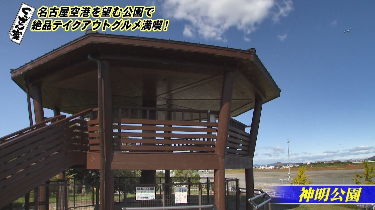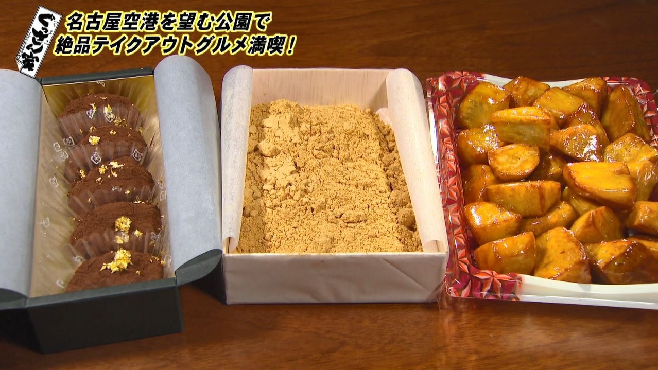 テイクアウトで大好きな大学芋とわらび餅を購入したぐっさん。やってきたのは県営名古屋空港のすぐ横にある『神明公園』。
