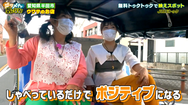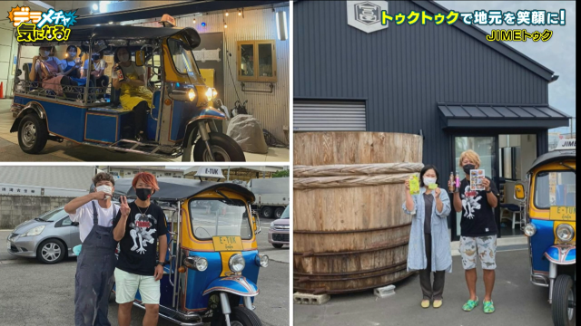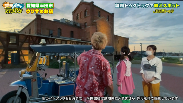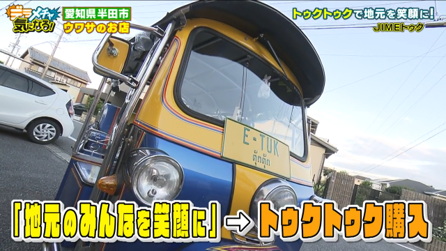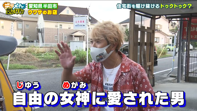 半田の住宅街で出会ったのはなんとトゥクトゥク!「ここはバンコク!?」とはるなが驚きです。声を出して戻ってきてもらうと、運転していたのはまるで現地のコーディネーターのような個性的なファッションのお兄さん。本人曰く「自由の女神に愛された男」で、ジメさんと呼ばれているそうです。
