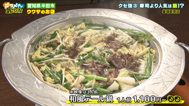 紹介した商品など:尾州早すし…2, 200円*要予約 和風テール鍋…1100円~(1人前)*映像は3人前 すしピザ*メニューには無いが店主の気まぐれで出すかも。