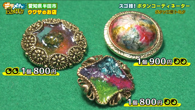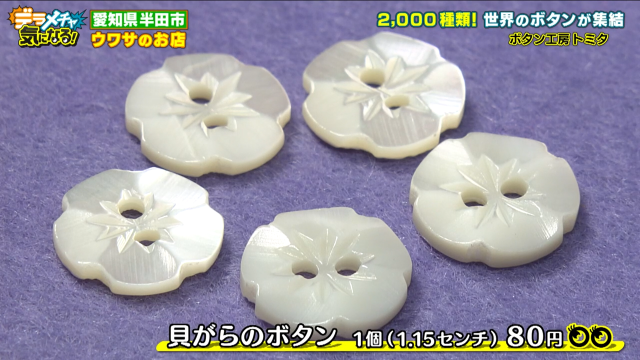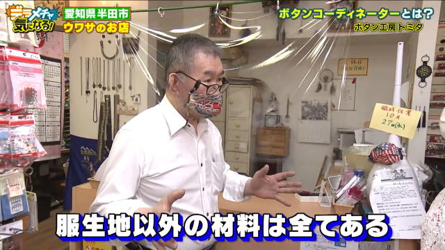 続いて二人が検証するのもクセが強い人物に関するウワサ。何でも半田には「ボタンコーディネーターがいるらしい」というんです。そんなウワサの人物がいるのは『ボタン工房トミタ』。ボタンはボタンでも、服につけるほうのボタンのようです。