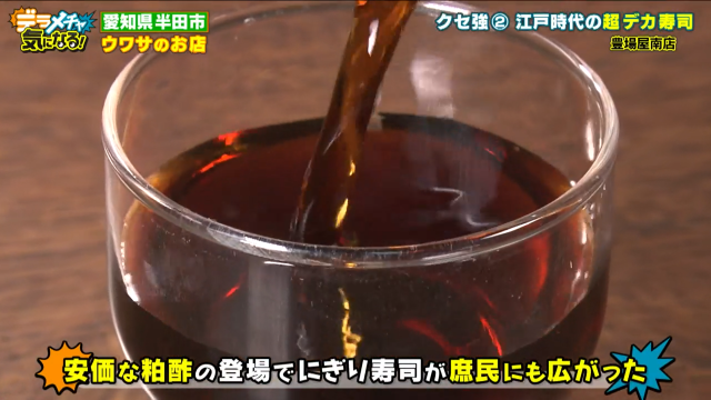 流行した理由は地元半田市にあるミツカンの粕酢。当時は高価だった米酢に代わり、リーズナブルな粕酢の登場したことで巨大なにぎり寿司が庶民の間で大ブームになったんだそうです。