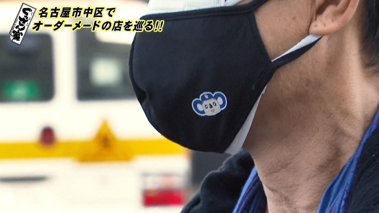 実は升さんは小学生の頃からのドラゴンズファン!この日もマスクにはドラゴンズのマスコット・ドアラのワンポイントつき♪そんなお茶目な升さんと名古屋市中区でオーダーメードのお店を巡ります。