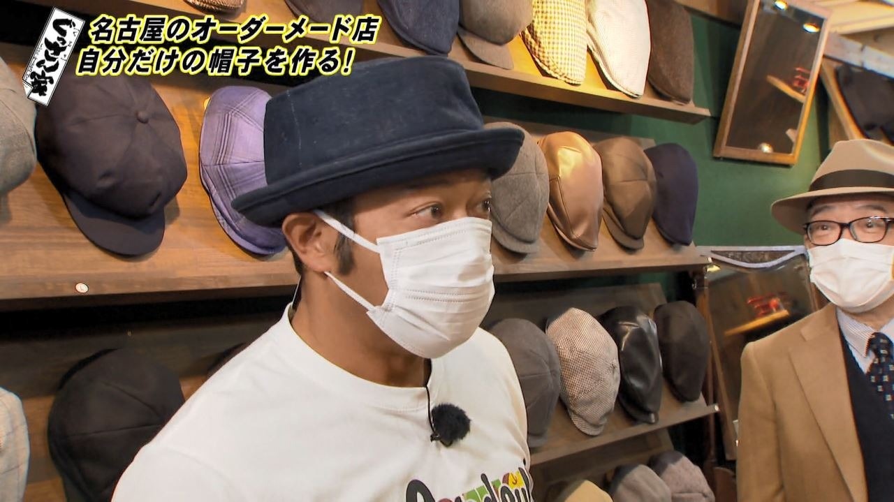 麦わら帽子の製造から始まり、お客さんの様々な要望に応えるため、現在のオーダーメードスタイルに。ぐっさんもお店に入るなり「もう目に飛び込んでくる帽子、大好きなやつがいっぱいありますわ。帽子大好きなんですよ!」と目を輝かせます。