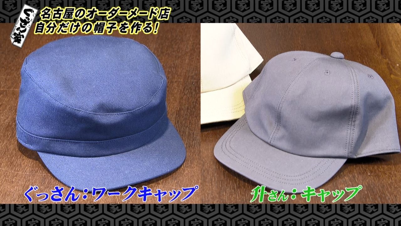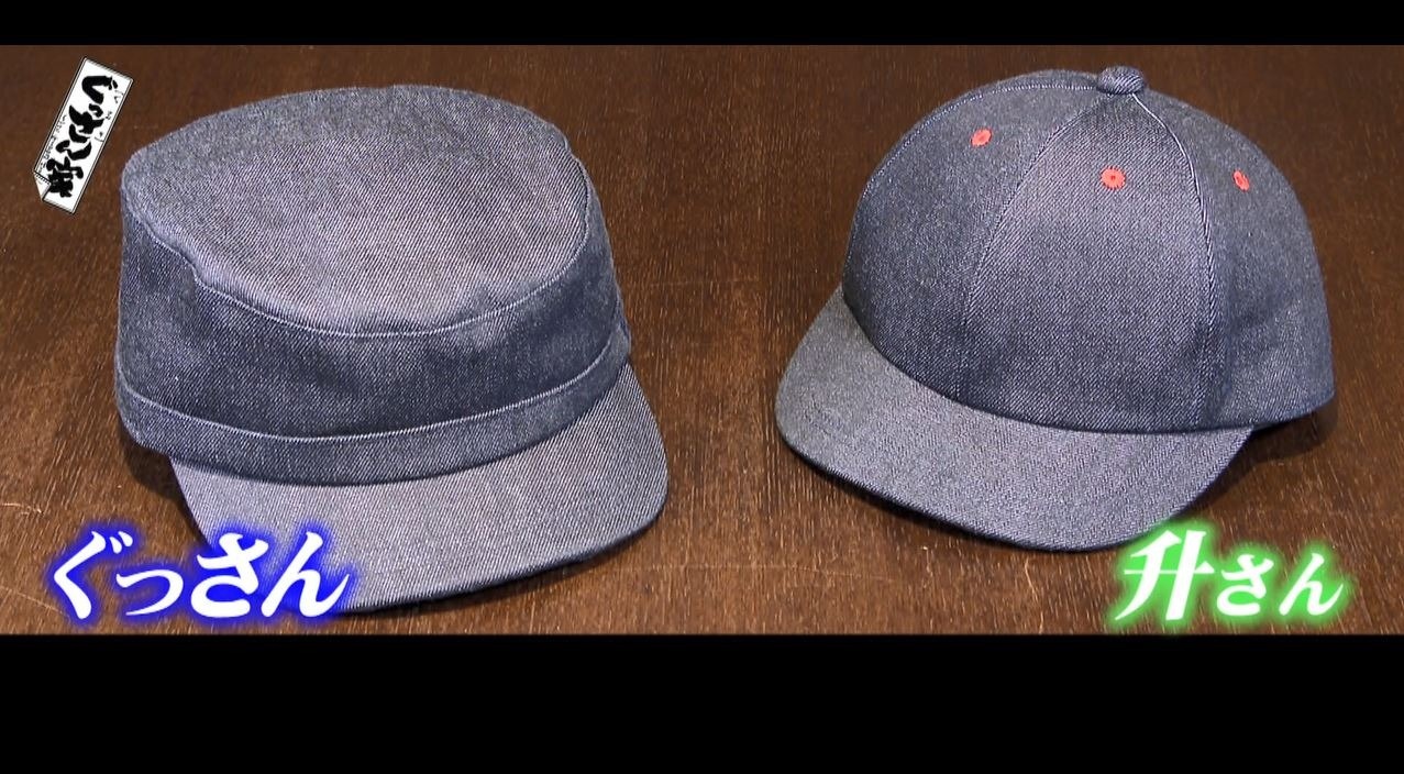迷った末、ぐっさんが選んだのはトップが平らな形をした『ワークキャップ』、升さんはシンプルな『キャップ』をチョイス。